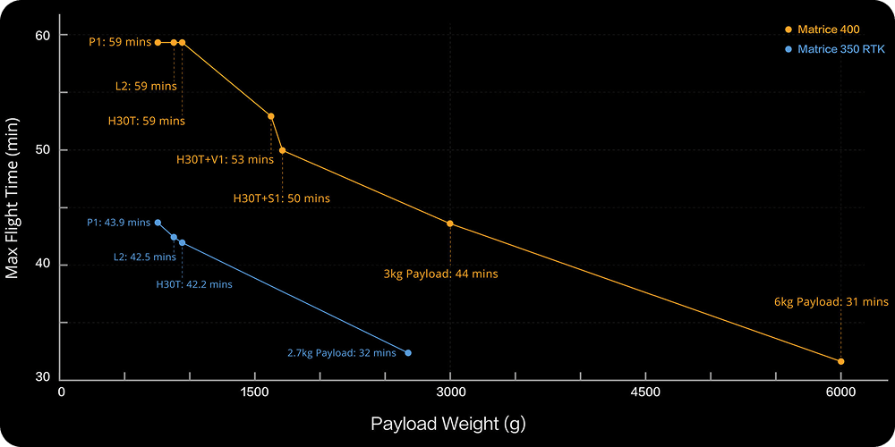 Υπολογίστε τον χρόνο πτήσης του Matrice 400 με βάση τη διαμόρφωση του ωφέλιμου φορτίου.